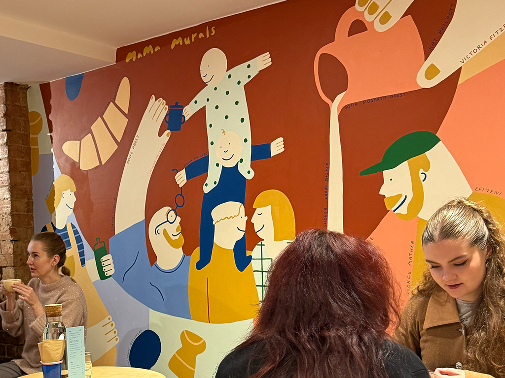 Site-specific artwork for organisations, communities, residential homes and businesses. Whether you’re enhancing a public space, or your own family home, wall murals by mama murals are created with your ideas at the heart. I can work with you, your company or community, run workshops and facilitate co-creation to design something perfect for your space and the mood you want to create. I also deliver team building art workshops and talks.